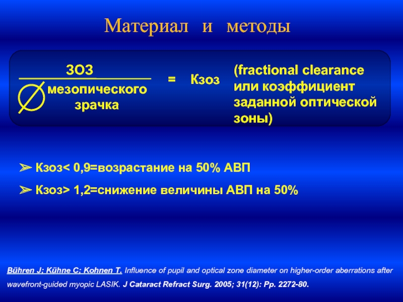 Bühren J; Kühne C; Kohnen T. Influence of pupil and optical zone diameter on higher-order aberrations after wavefront-guided myopic LASIK. J Cataract Refract Surg. 2005; 31(12): Pp. 2272-80.