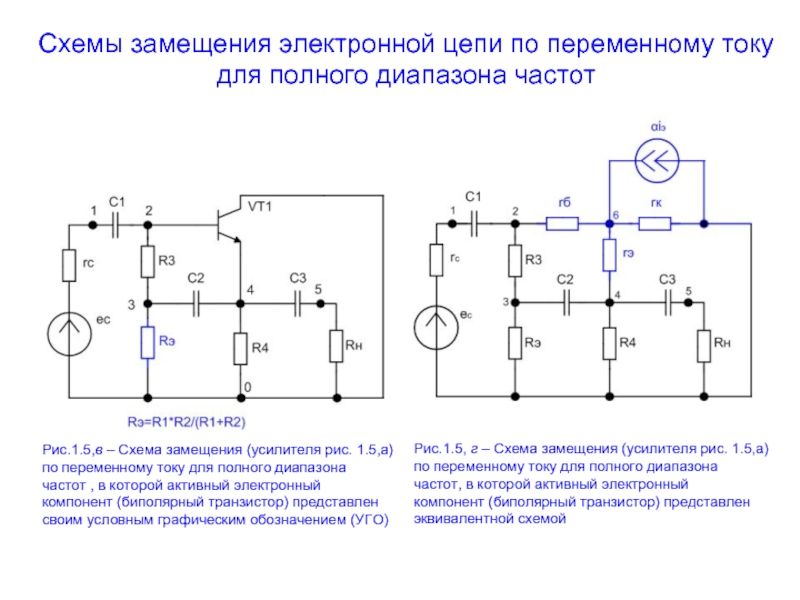 (усилителя рис. 1.6,а) по переменному току для рабочего диапазона частот
