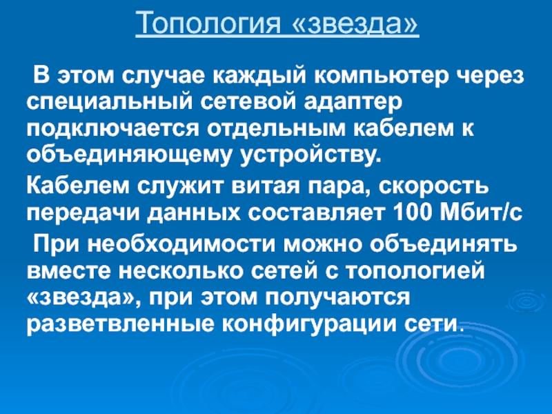 При необходимости можно объединять вместе несколько сетей с топологией «звезда», при этом получаются разветвленные конфигурации сети.