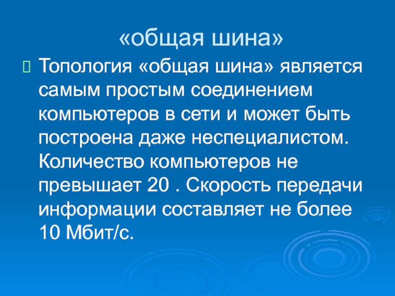 Топология «общая шина» является самым простым соединением компьютеров в сети