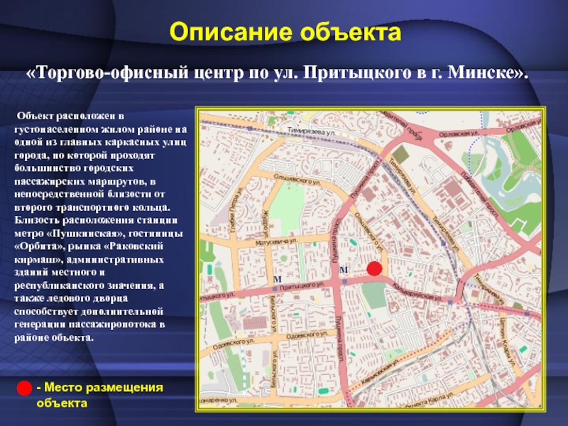 Город Минск – столица Республики Беларусь. Минск расположен на Минской возвышенности на обоих берегах реки Свислочь. Площадь Минска составляет более трехсот семи километров квадратных ( 307,9 км2). Население – 1829,1 тысяч человек. Находясь на пересечении стратегических путей с Запада на Восток и с Севера на Юг, из Москвы в Варшаву и из Киева в Вильнюс, Минск является крупным транспортным центром с несколькими автобусными станциями, железнодорожным вокзалом, двумя аэропортами