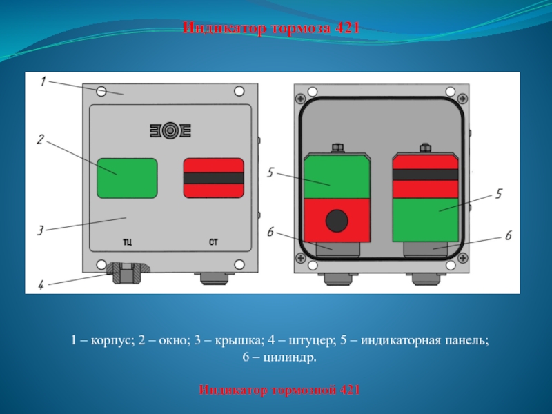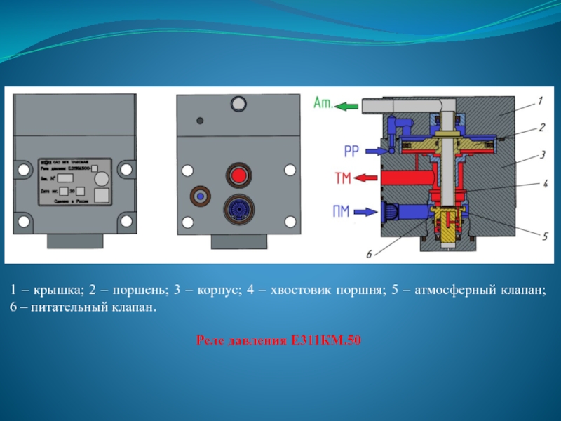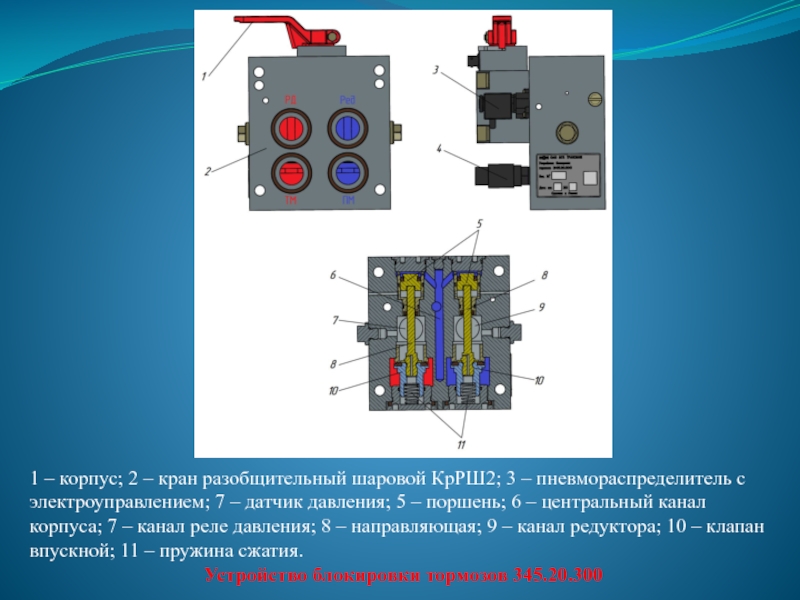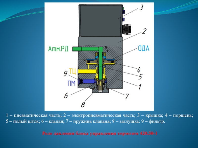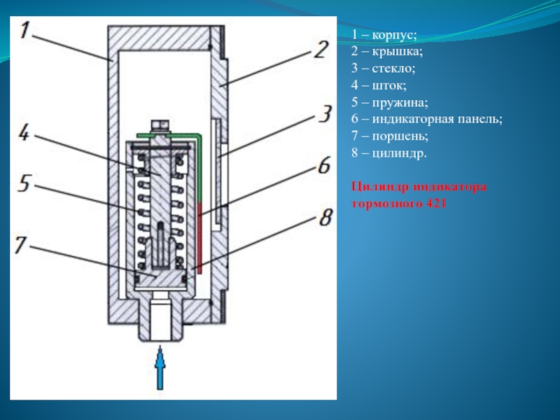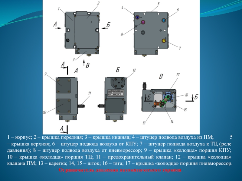 Слайд 1041 – корпус; 2 – цилиндр автоматического тормоза; 3 – автоматический