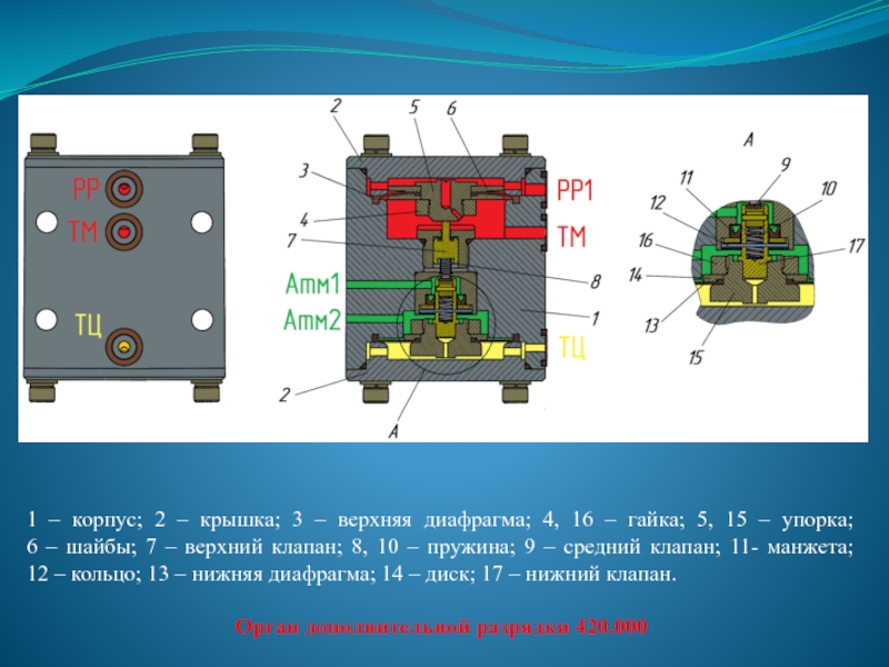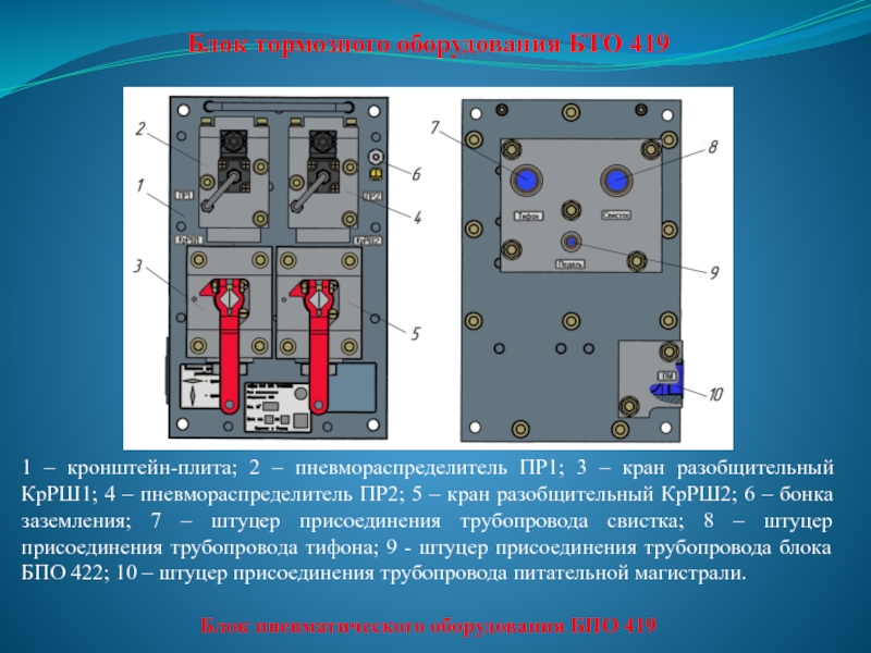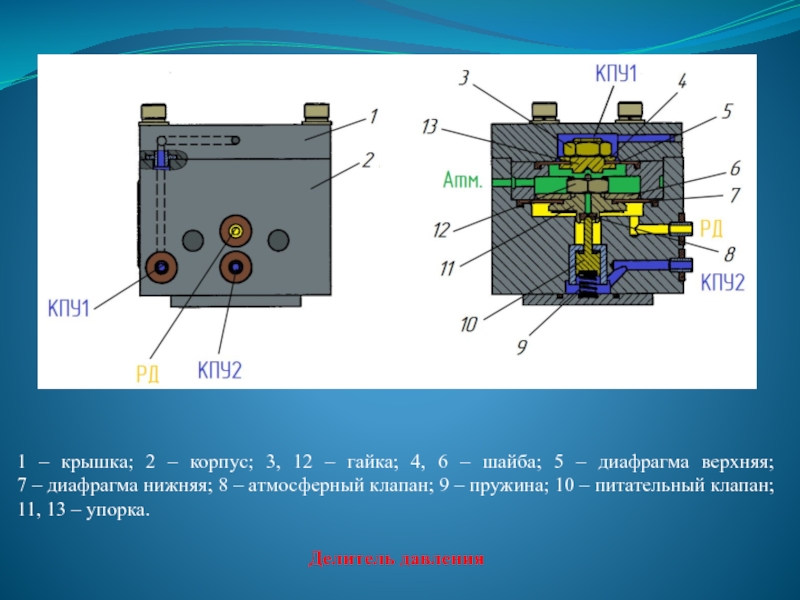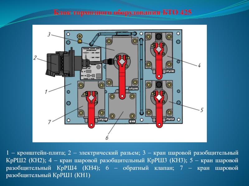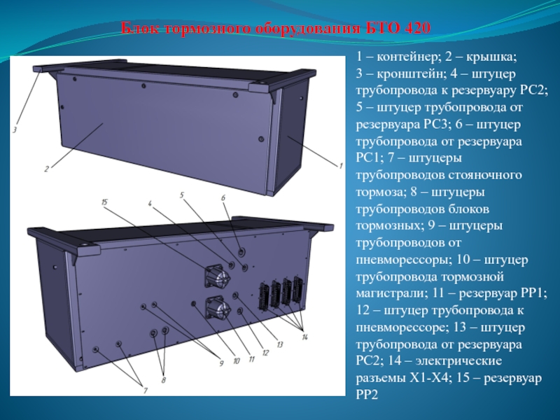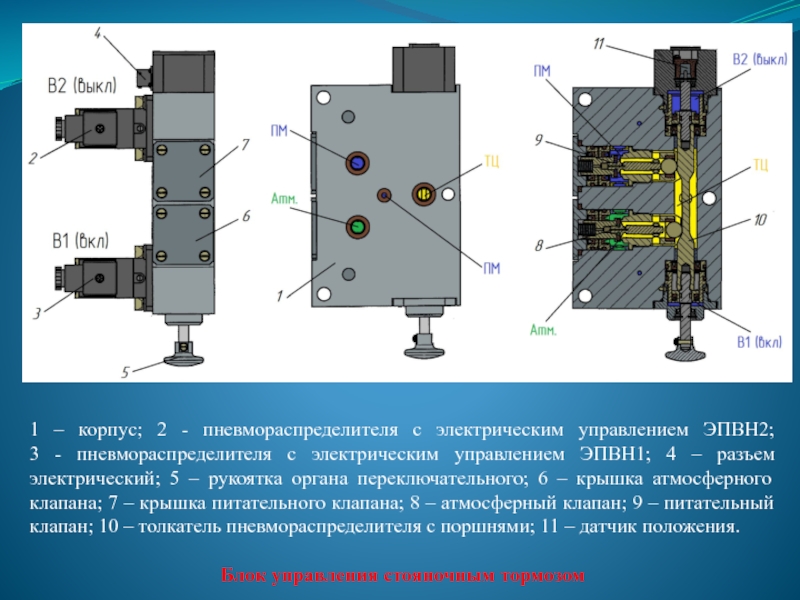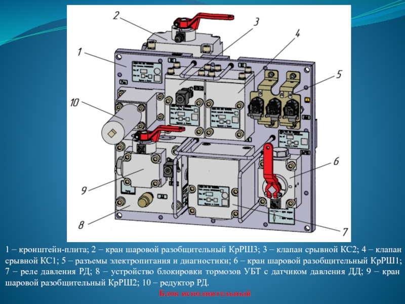 Слайд 1041 – корпус; 2 – цилиндр автоматического тормоза; 3 – автоматический