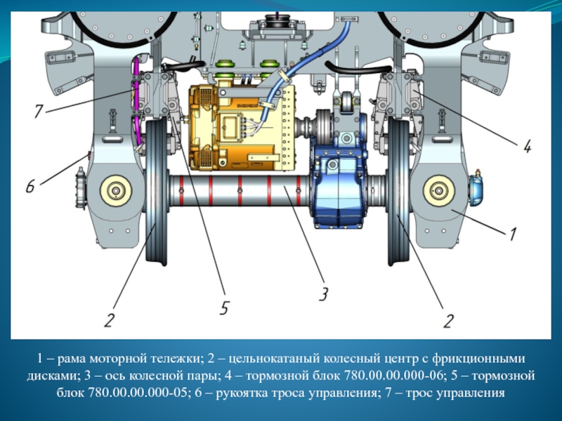 Слайд 1021 – рама моторной тележки; 2 – цельнокатаный колесный центр с