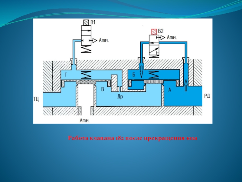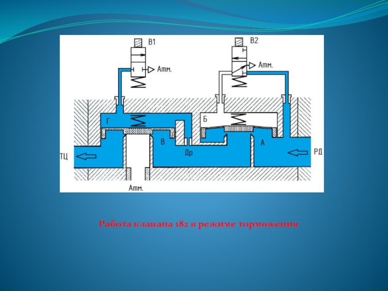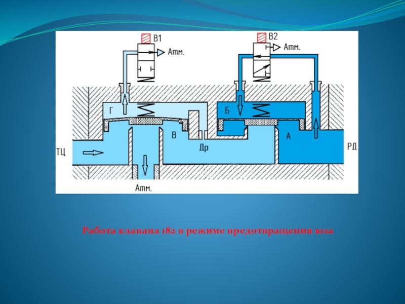 Слайд 99Работа клапана 182 в режиме предотвращения юза