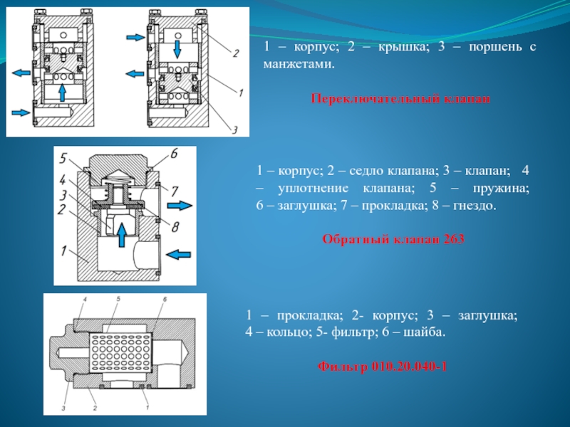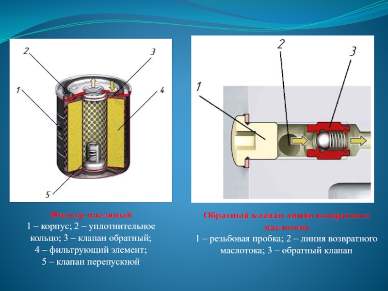 обратный; 4 – фильтрующий элемент; 5 – клапан перепускной