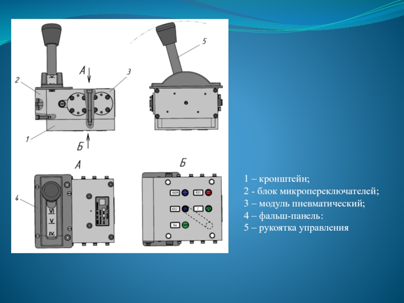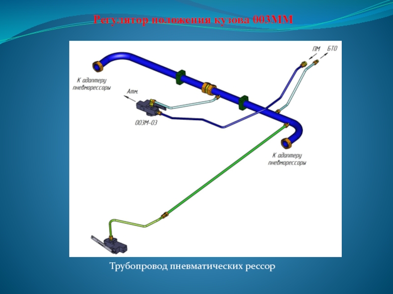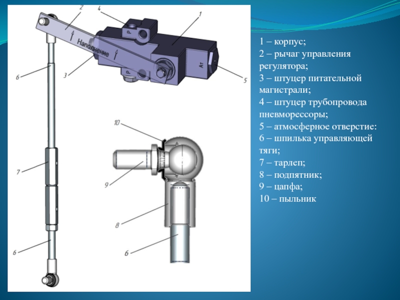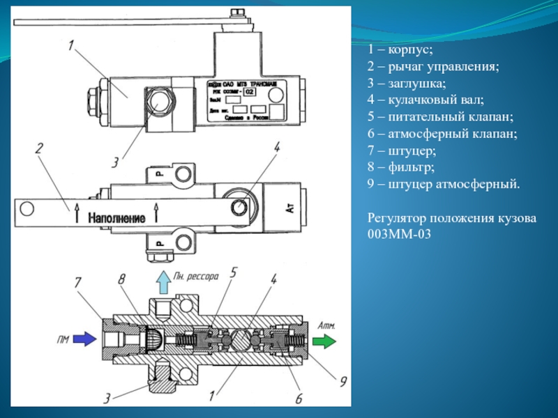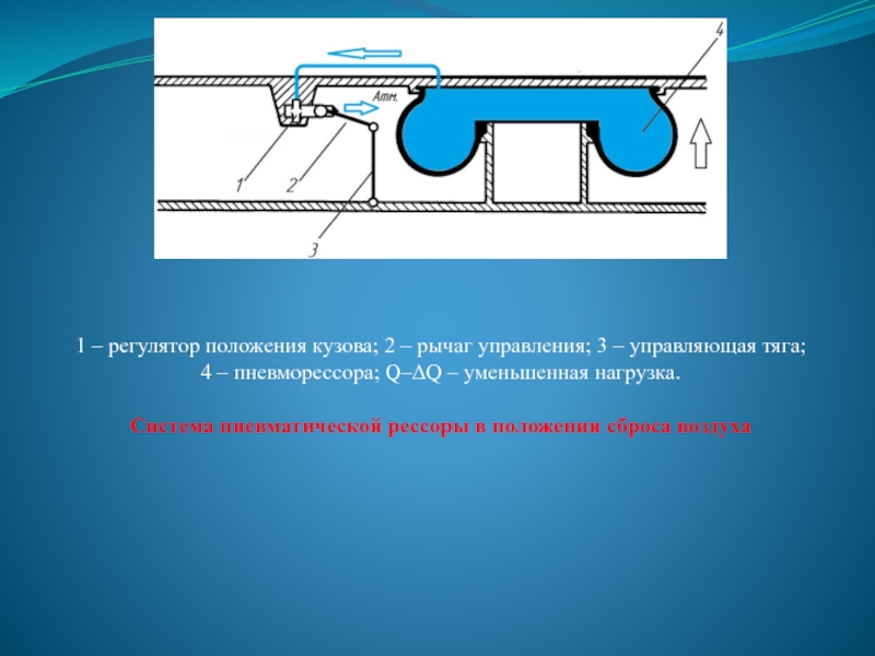 Слайд 901 – регулятор положения кузова; 2 – рычаг управления; 3 –
