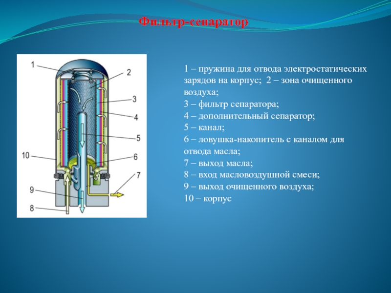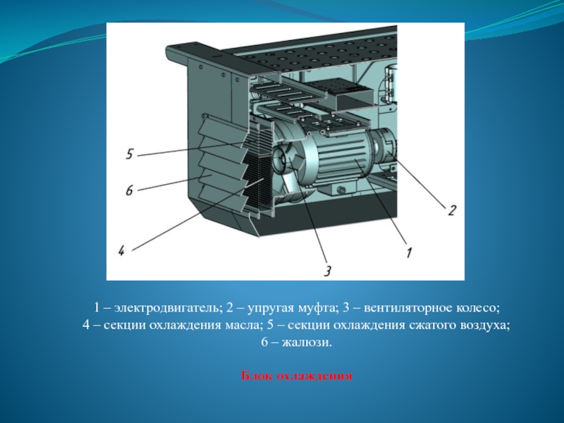 Слайд 91 – охладитель воздуха и масла; 2 – рама; 3 –