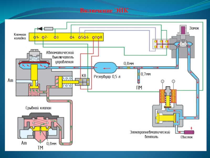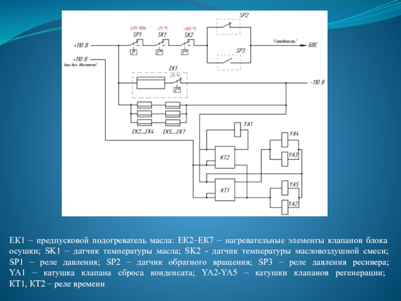 Слайд 25ЕК1 – предпусковой подогреватель масла: ЕК2–ЕК7 – нагревательные элементы клапанов блока