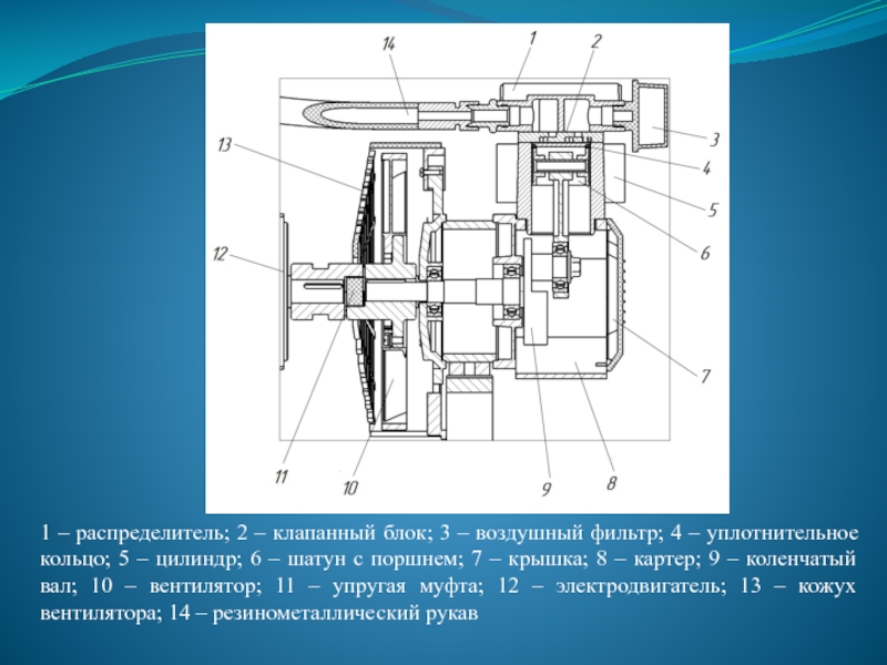 Слайд 191 – электродвигатель; 2 – упругая муфта; 3 – вентиляторное колесо;