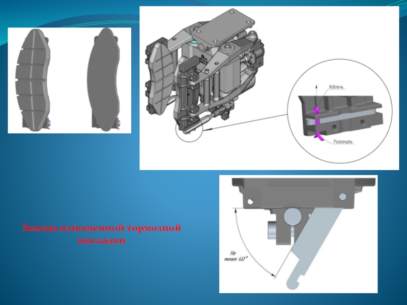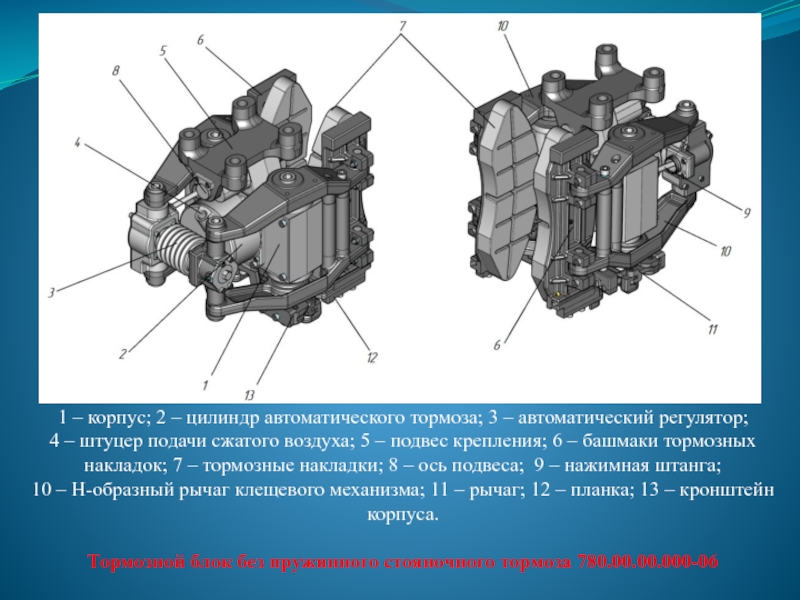 Слайд 1051 – корпус; 2 – тормозная накладка; 3 – башмак; 4,