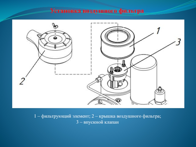 1 – фильтрующий элемент; 2 – крышка воздушного фильтра;