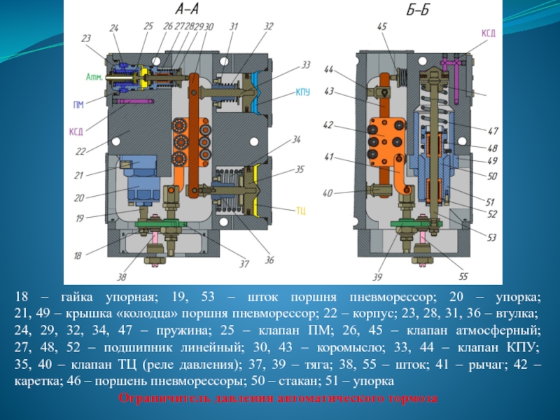 Слайд 1031 – корпус; 2 – цилиндр автоматического тормоза; 3 – автоматический