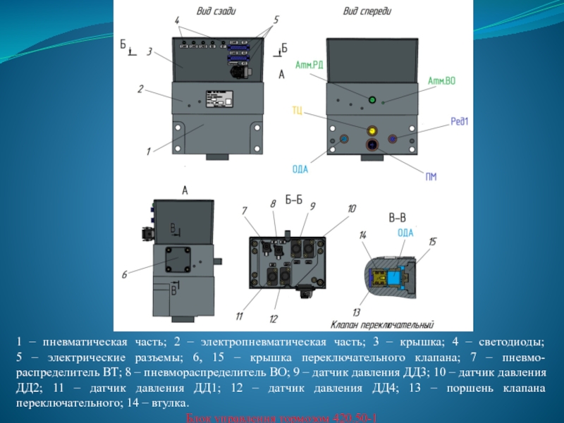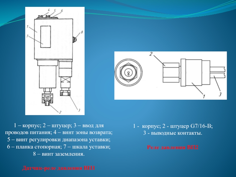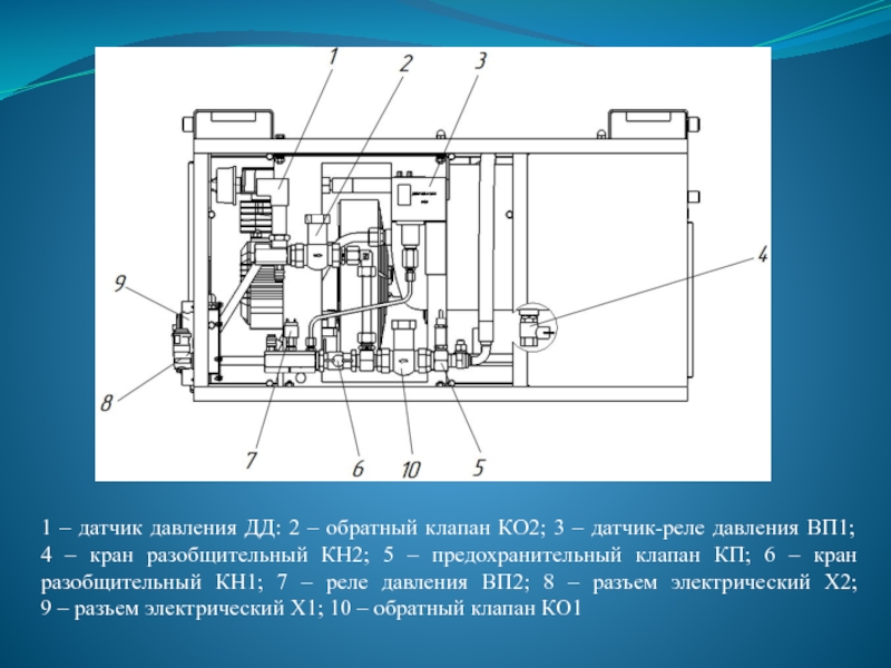 Слайд 81 – штуцер; 2 – разъемы для подключения питания и систем