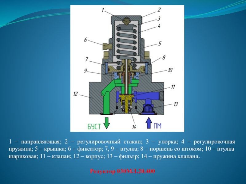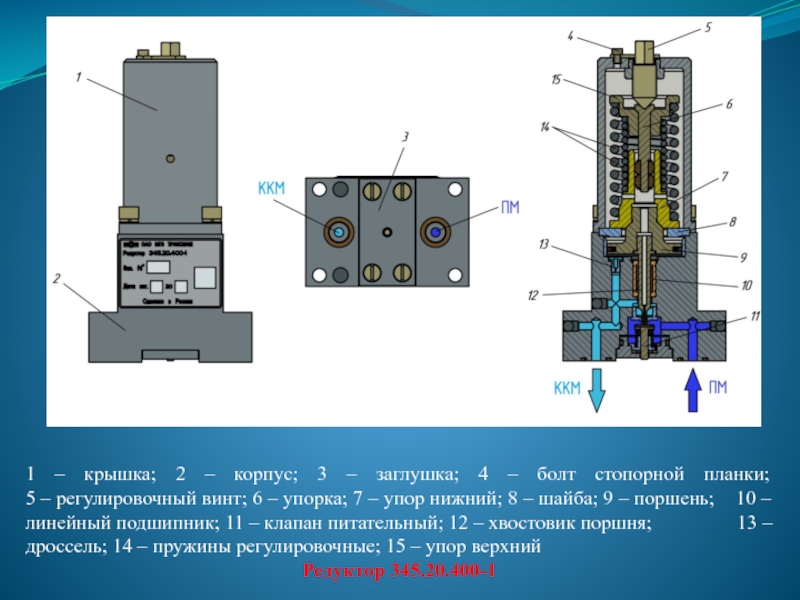 Слайд 201 – винт регулировки верхнего придела; 2 – винт регулировки нижнего