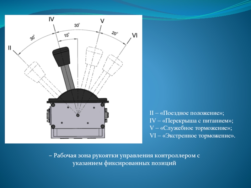действие МПСУиД по команде машиниста, при перемещении рукоятки контроллера «Тяга-торможение» в область «2» (торможение).