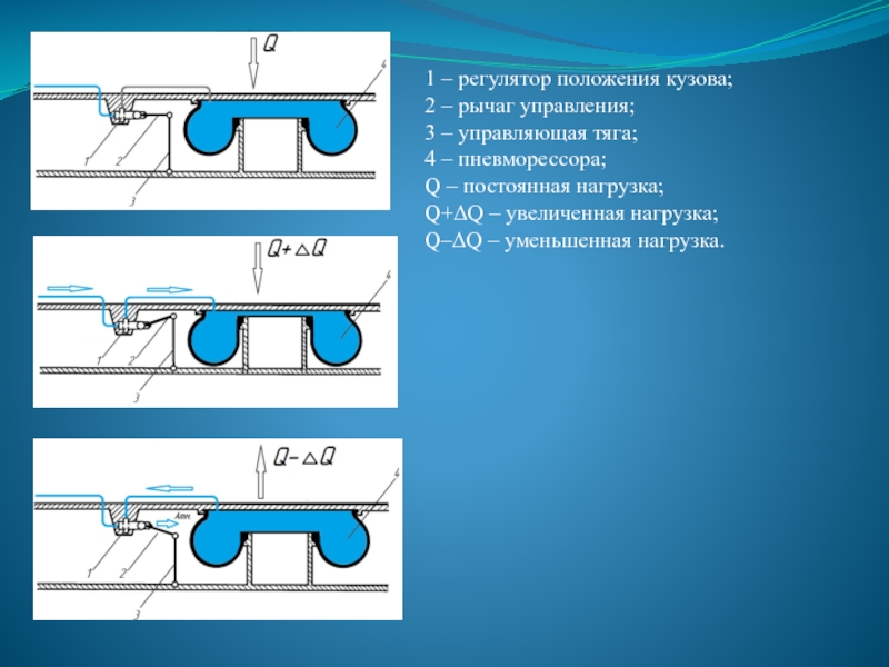 4 – пневморессора; Q–ΔQ – уменьшенная нагрузка.