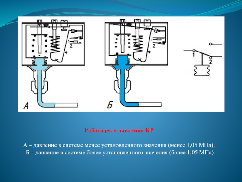 Б – давление в системе более установленного значения (более 1,05 МПа)