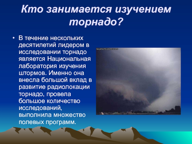 В течение нескольких десятилетий лидером в исследовании торнадо