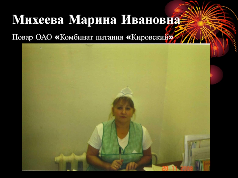 Слайд 10Михеева Марина Ивановна Повар ОАО «Комбинат питания «Кировский»