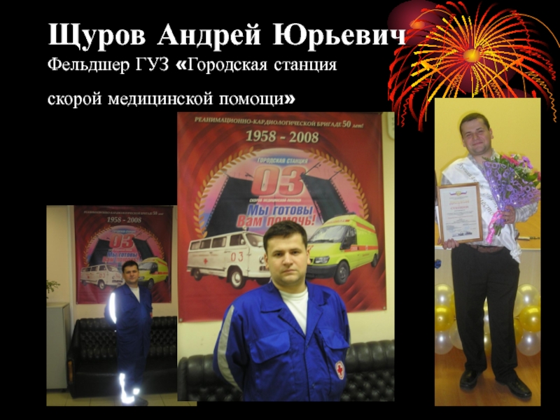 Слайд 7Щуров Андрей Юрьевич Фельдшер ГУЗ «Городская станция скорой медицинской помощи»