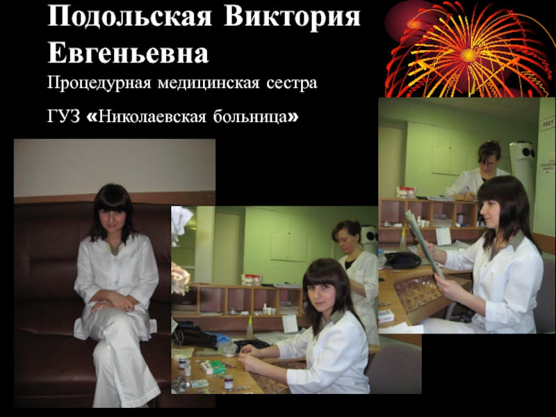 Слайд 8Подольская Виктория Евгеньевна Процедурная медицинская сестра ГУЗ «Николаевская больница»