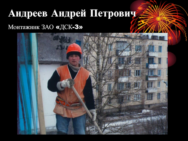 Слайд 4Андреев Андрей Петрович Монтажник ЗАО «ДСК-3»
