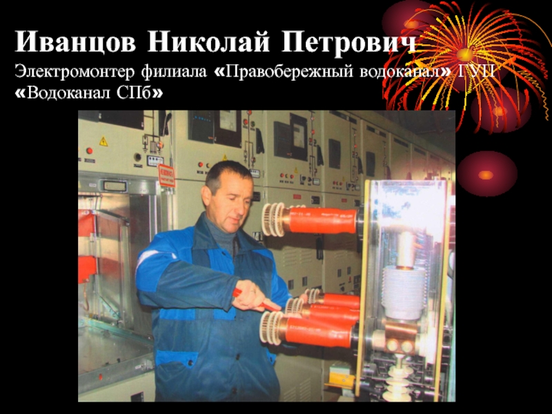 Слайд 5Иванцов Николай Петрович Электромонтер филиала «Правобережный водоканал» ГУП «Водоканал СПб»