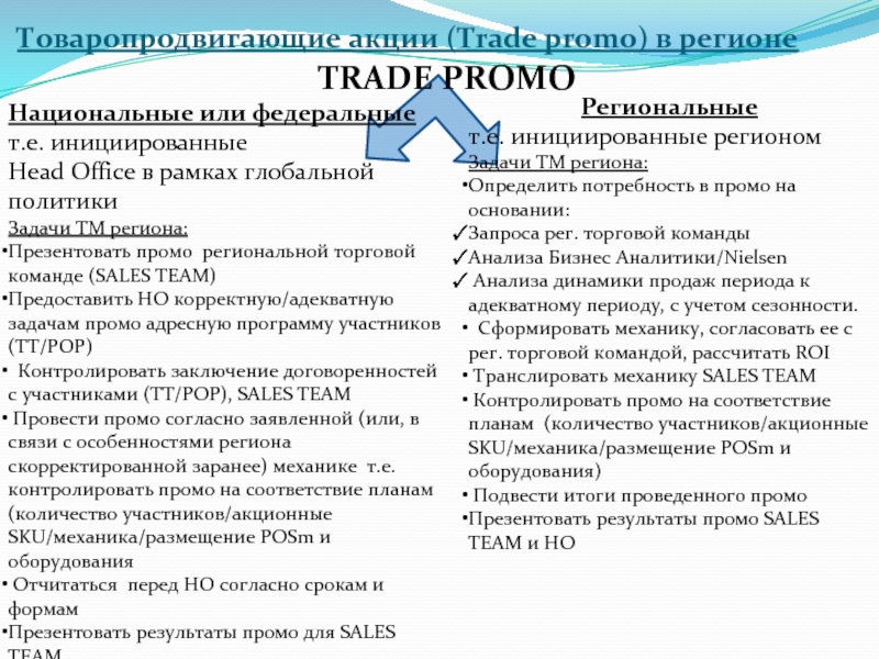 Презентовать промо региональной торговой команде (SALES TEAM)