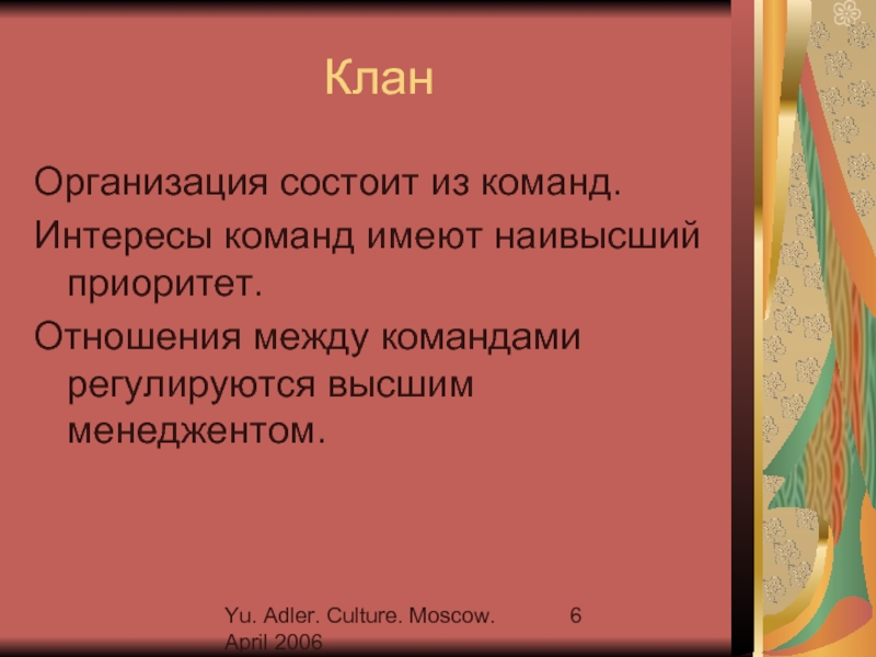 Слайд 6Yu. Adler. Culture. Moscow. April 2006
