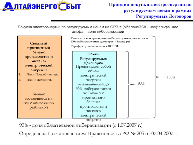 Покупка электроэнергии по регулируемым ценам на ОРЭ = (VбалансЭСК - нас)*альфа+нас