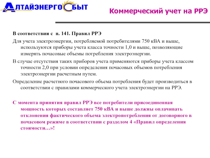 Коммерческий учет на РРЭ