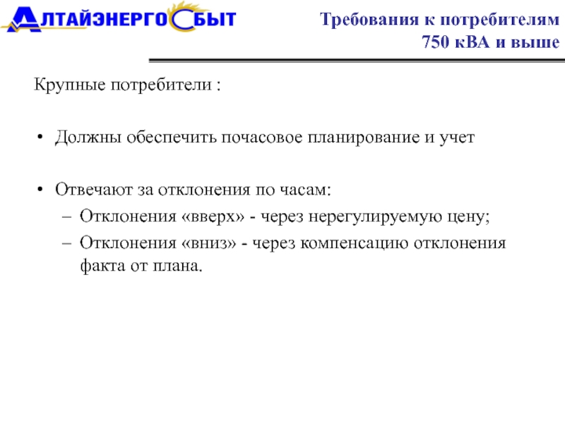 для потребителей >750 кВА: