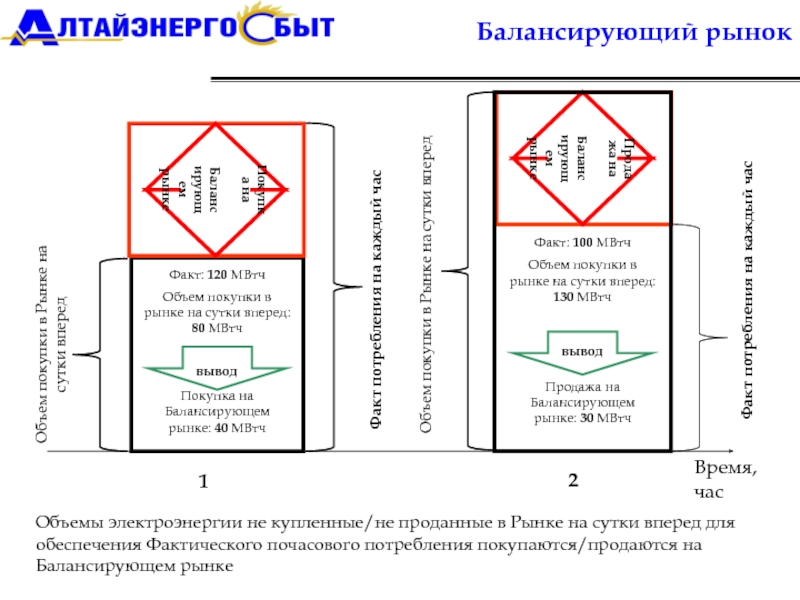 Объемы электроэнергии не купленные/не проданные в Рынке на сутки вперед для обеспечения Фактического почасового потребления покупаются/продаются на Балансирующем рынке