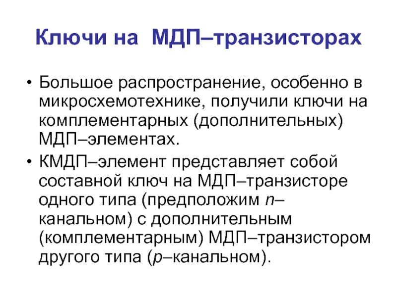 Большое распространение, особенно в микросхемотехнике, получили ключи на