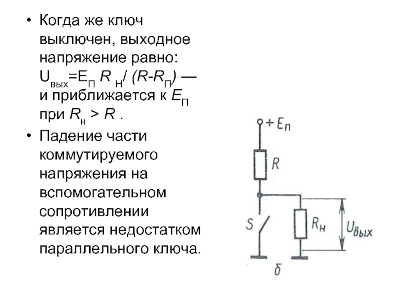 Слайд 5Когда же ключ выключен, выходное напряжение равно: Uвых=ЕП R Н/ (R-RП)