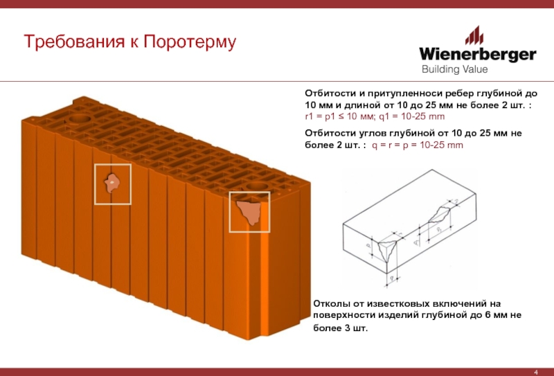 Отколы от известковых включений на поверхности изделий глубиной до 6 мм не более 3 шт.