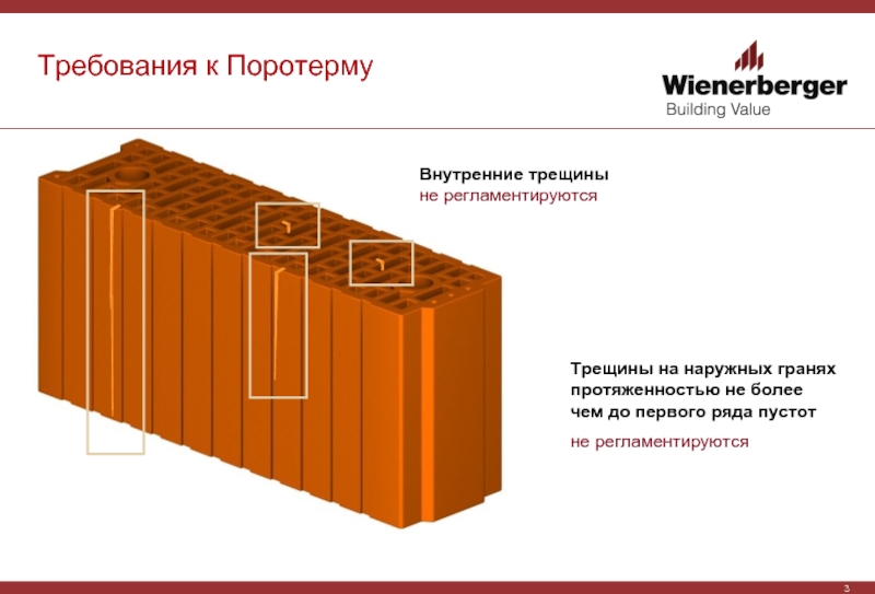 Трещины на наружных гранях протяженностью не более чем до первого ряда пустот