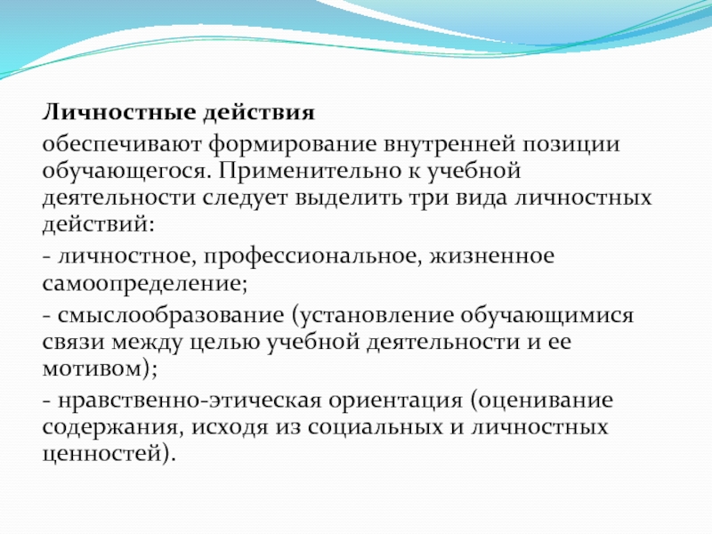 обеспечивают формирование внутренней позиции обучающегося. Применительно к учебной деятельности