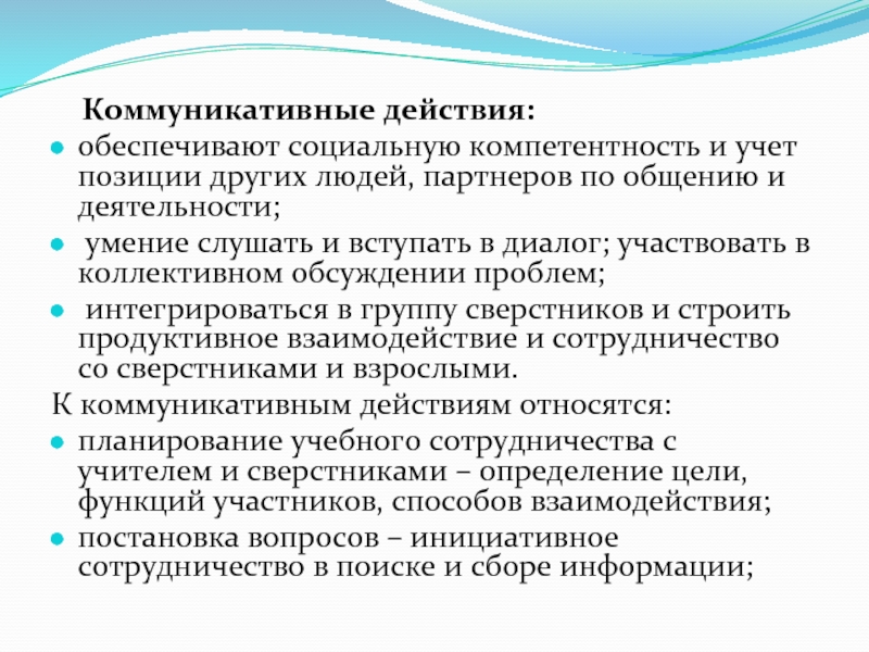планирование учебного сотрудничества с учителем и сверстниками – определение цели, функций участников, способов взаимодействия;
