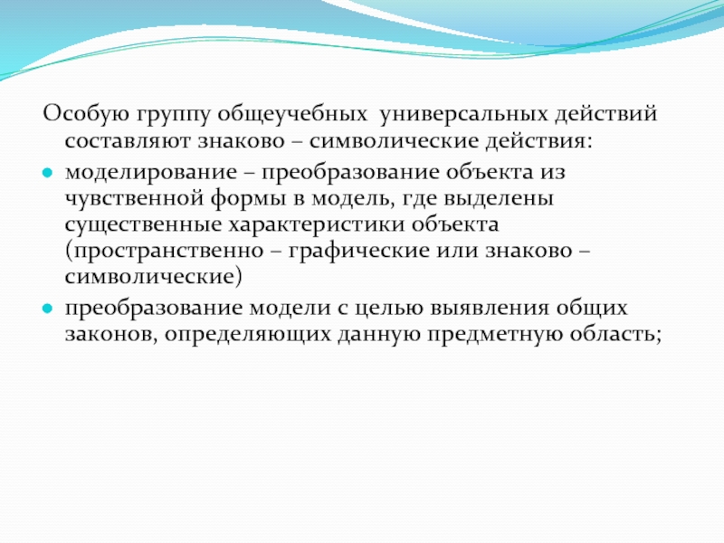 Слайд 9Особую группу общеучебных универсальных действий составляют знаково – символические действия: