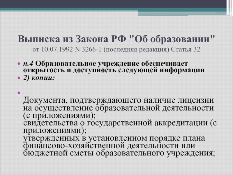 п.4 Образовательное учреждение обеспечивает открытость и доступность следующей информации