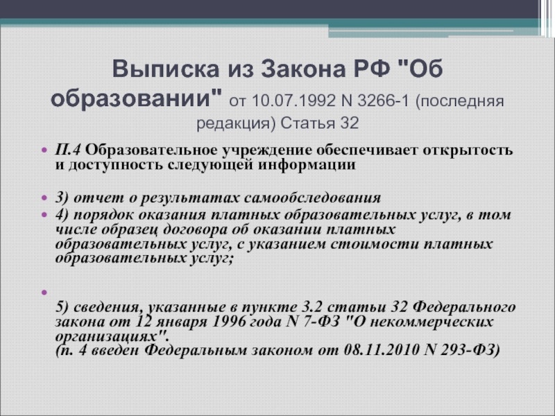 Информация, указанная в пункте 4 настоящей статьи, подлежит размещению на официальном сайте образовательного учреждения в сети "Интернет" и обновлению в течение тридцати дней со дня внесения соответствующих изменений.