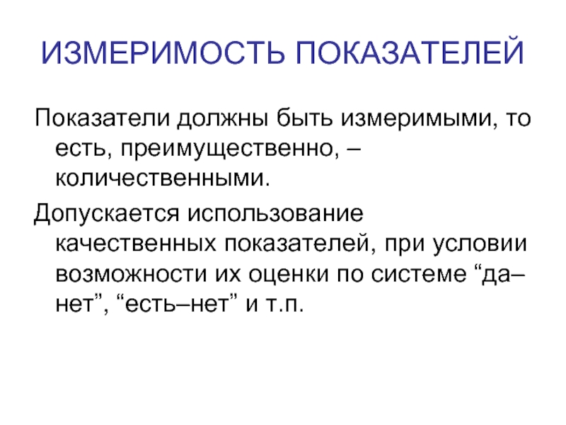 Слайд 6ИЗМЕРИМОСТЬ ПОКАЗАТЕЛЕЙ