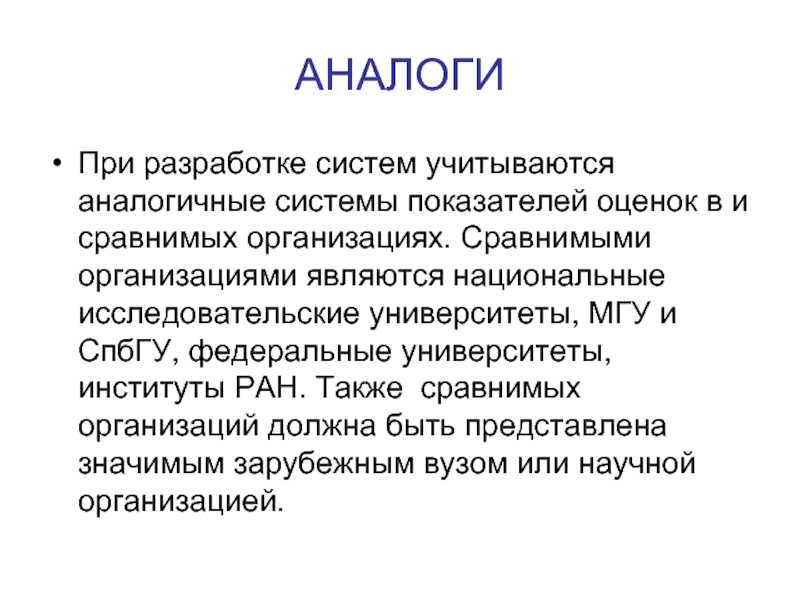 При разработке систем учитываются аналогичные системы показателей оценок в и сравнимых