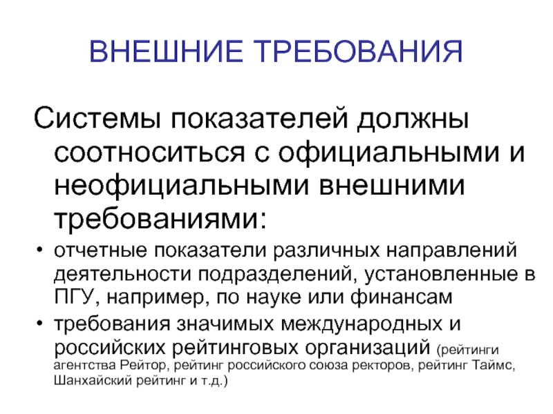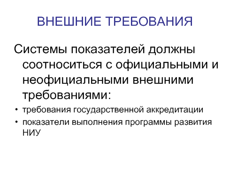 Слайд 9ВНЕШНИЕ ТРЕБОВАНИЯ