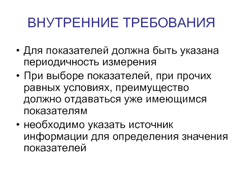 Слайд 8ВНУТРЕННИЕ ТРЕБОВАНИЯ