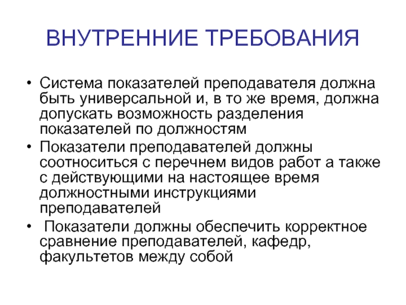 Слайд 1Требования к системе показателей оценки деятельности преподавателей, факультетов и кафедр