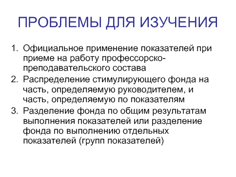 Официальное применение показателей при приеме на работу профессорско-преподавательского состава