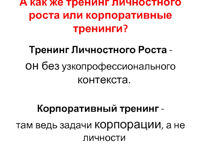 Слайд 5А как же тренинг личностного роста или корпоративные тренинги?